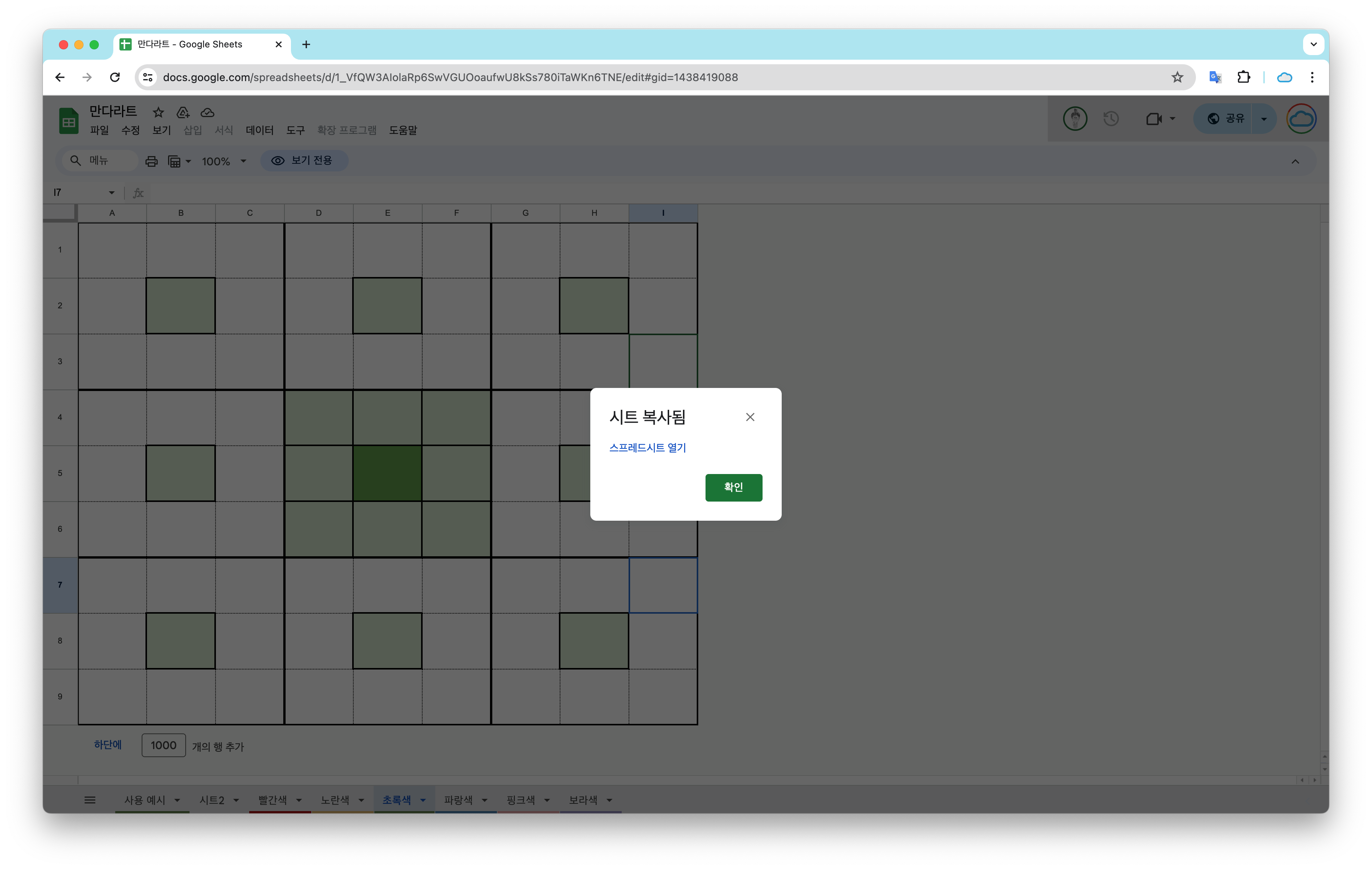 4. 원하는 색깔의 시트가 내 드라이브에 생성된 것을 확인할 수 있습니다.