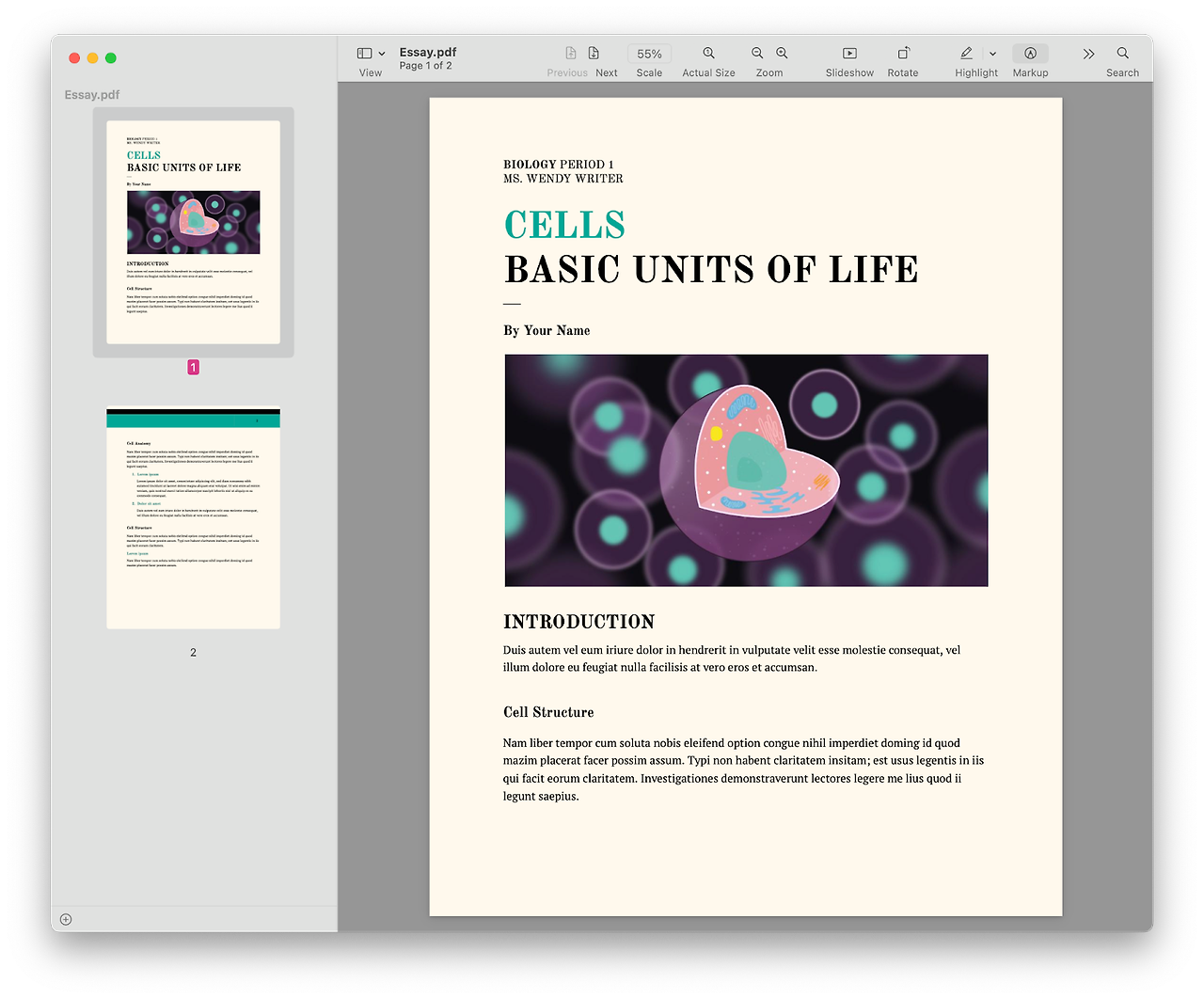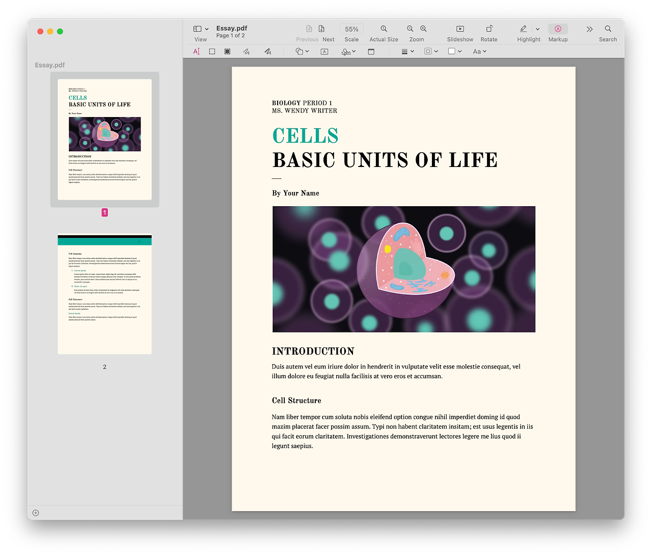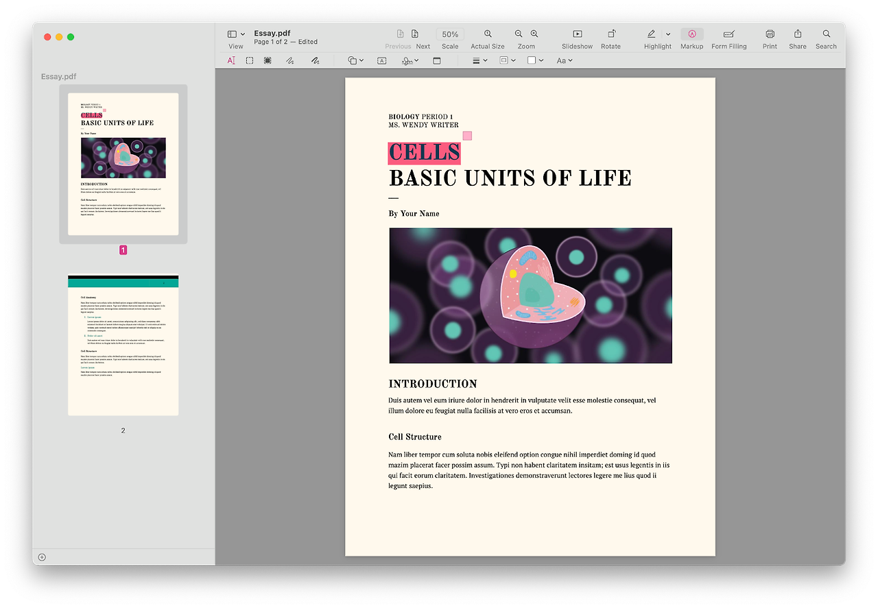 1. PDF파일을 미리보기로 실행한 뒤, 우측 상단 Markup메뉴를 클릭합니다.