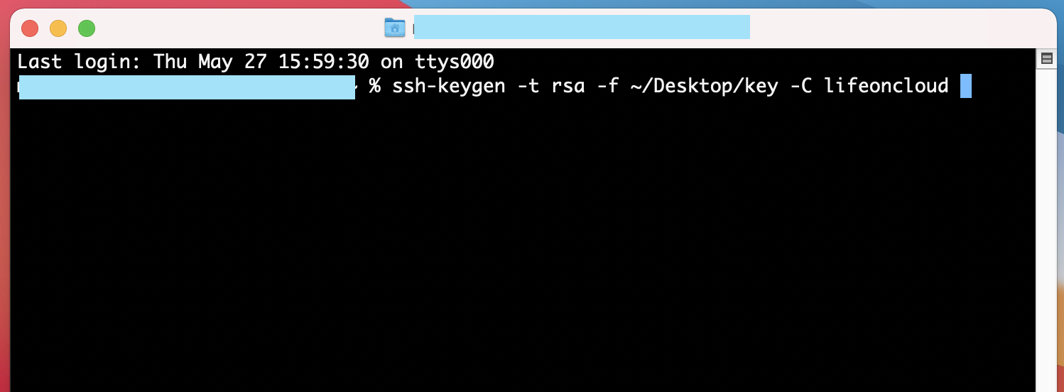 ssh-keygen -t rsa -f ~/Desktop/key -C lifeoncloud