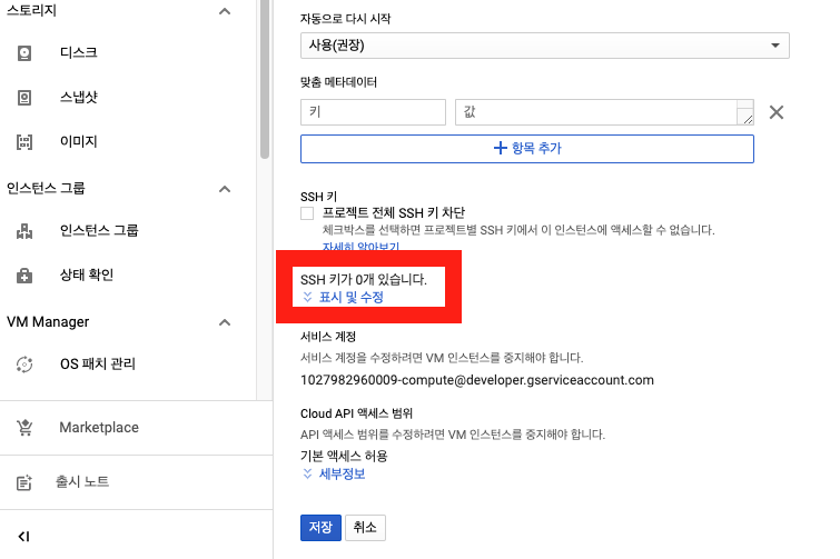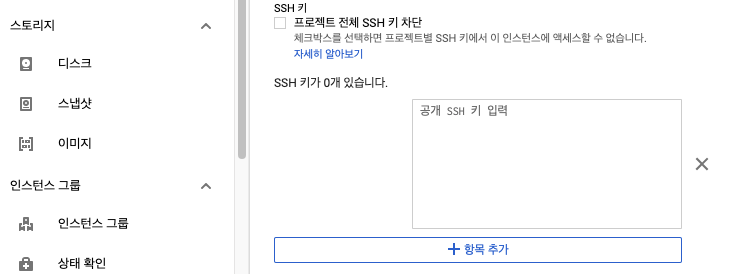 2단계 : VM 인스턴스에 공개키 붙여넣기